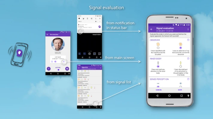 Randomly app-generated signals wake a person from a mechanical way of life and constructions created by his mind. The need of evaluating the signal makes one to constantly observe himselve, otherwise he is not able to evaluate the signal based on the selected criteria.