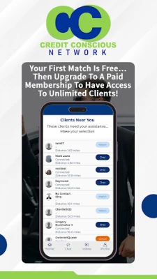 If you're a credit repair specialist, download and sign up on our app to enjoy your first client on us! Upgrade to a paid membership for unlimited access to clients in your area. Connect with potential clients, chat with them and help them on their journey to excellent credit scores. We don't set your prices, and we don't take any commission – you're in charge of your business.