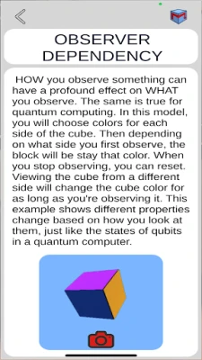View augmented reality models of quantum computing concepts through your phone. You'll need a Merge Cube (link included to download). Click on different button to navigate to different topics. Tap the camera icon and point your camera towards the Merge Cube to visualize and interact with our MARVLS. Topics include observer dependency, superposition, entanglement, bits, qubits, nuclear and electron spin, logic gates, and trapped ions. Developer support provided by Leo Vanderlofske.
