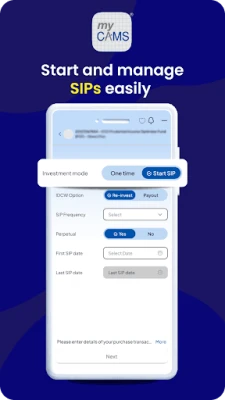 myCAMS brings a host of features - get a one view of your MF portfolio, open new folios, purchase, redeem, switch, set up SIP and more. The app facilitates faster, easier and smarter ways to transact in Mutual Funds.