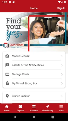 Our new mobile app provides members convenient access to Quantum Credit Union's mobile website, mobile check deposit, mobile banking, branch & contact information, and help.